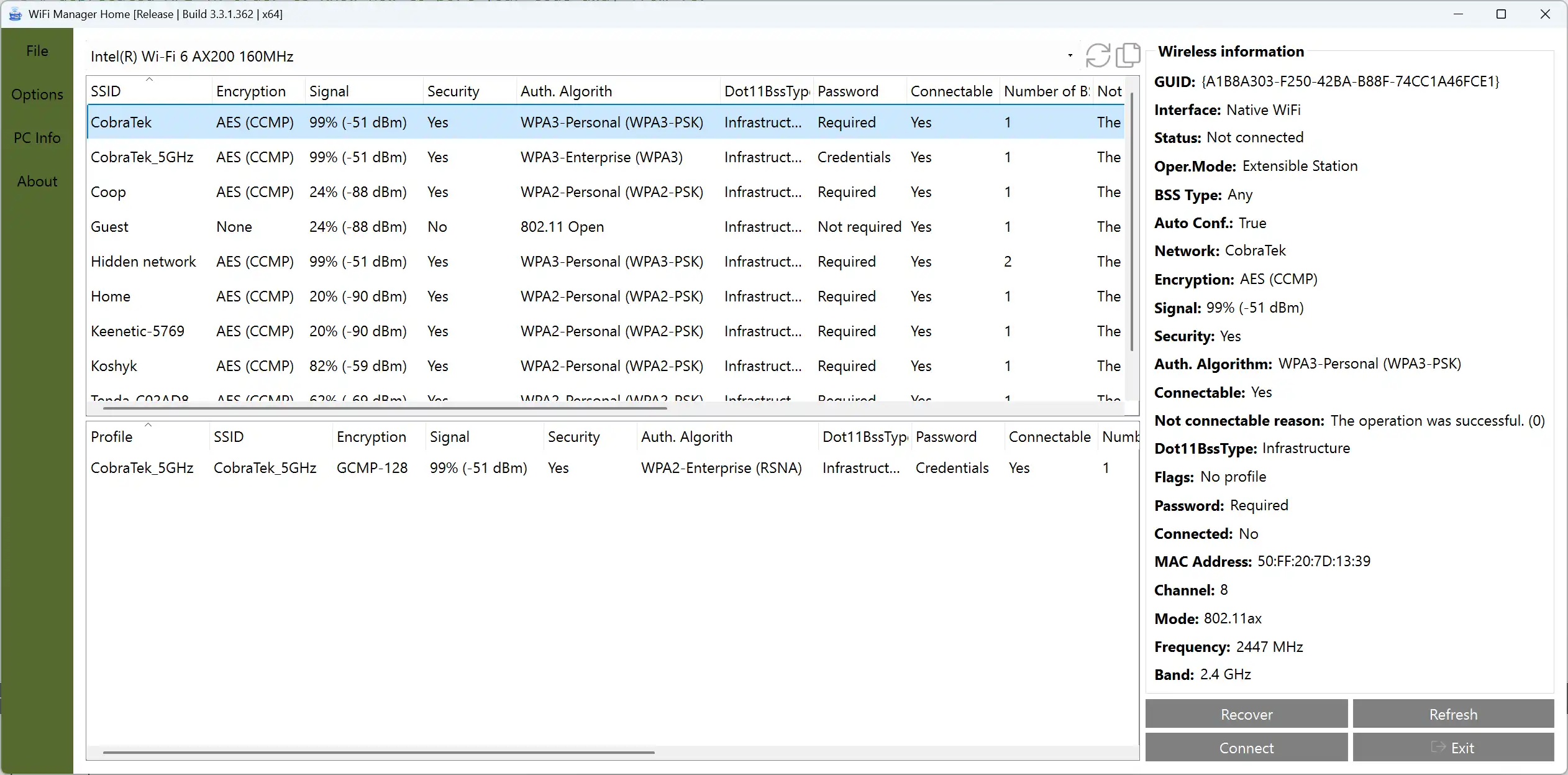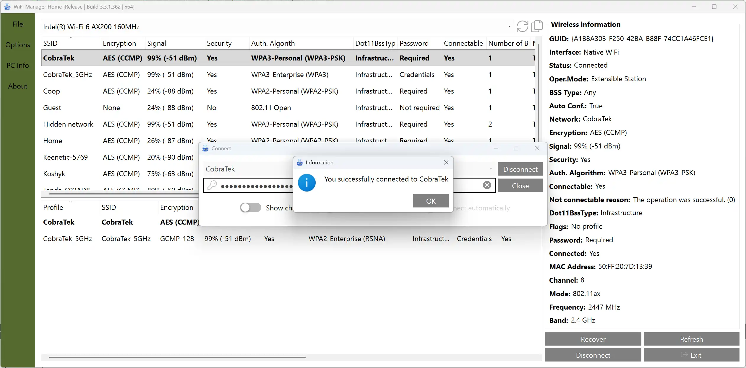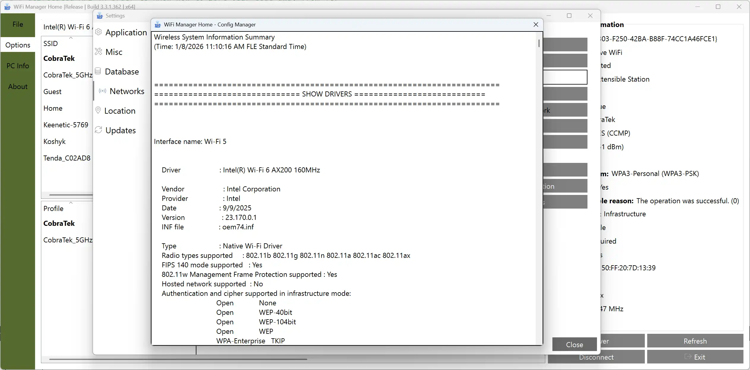 WiFi Manager Home allows you to manage wireless networks. Using scan feature you can quickly find your lost password for the wireless network. Also, the application gets you the ability to connect to the personal networks, check and set up hosted networks.
